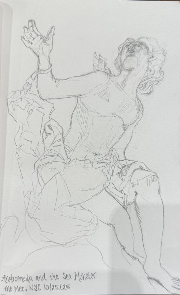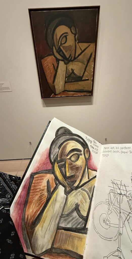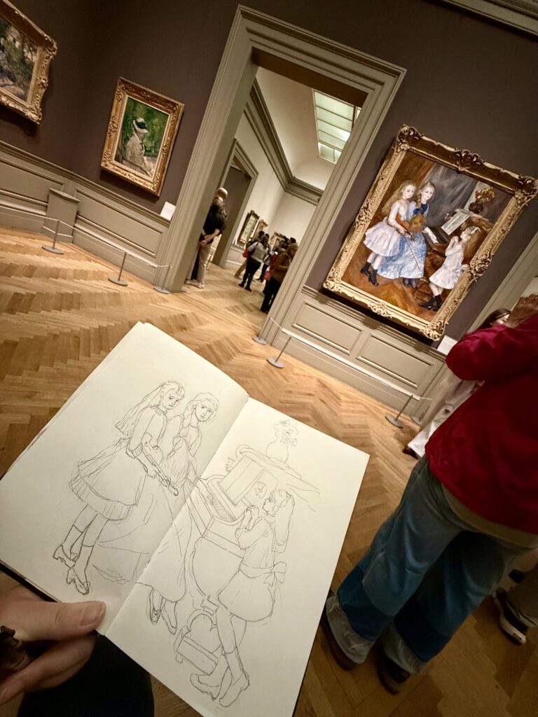 For me, this means keeping quick sketches of daily life that’s interesting to me. Most recently, I took advantage of the complimentary NYC museum passes that came with my New York Times corporate ID.